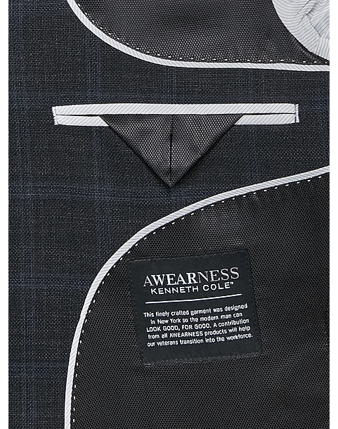 - 60% wool — 37% polyester — 3% spandex|Two button|Notch lapel|Side vents|Modern Fit|Awearness Kenneth Cole|