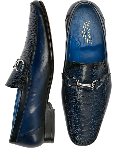 Elegantly crafted and ethically sourced, these Belvedere loafers shine with a silver-tone bit, finely stitched moc toe, and textured upper. Fashioned from Italian calfskin and genuine ostrich leather, you will feel relaxed and regal each time you slip them on.