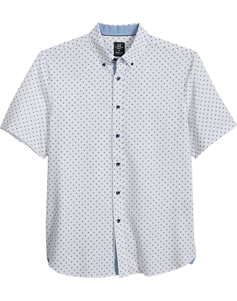 Michael Strahan Modern Fit 4-Way Stretch Short Sleeve Sport Shirt, White & Blue Dot