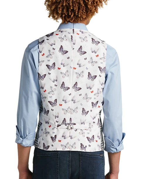 Add instant panache to your dressed up or dress-casual ensemble with this fine vest from Paisley & Gray. Woven into a classic glen plaid and lined with a butterfly pattern, it has a Slim Fit for a polished look.